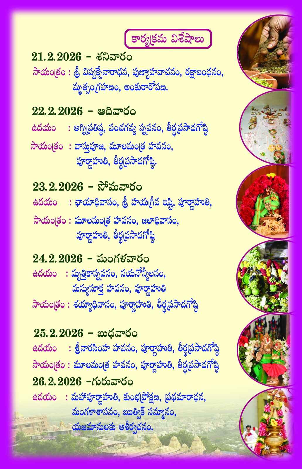 శ్రీలక్ష్మీ నరసింహ స్వామి వారు, శ్రీభూనీళా సమేత వైకుంఠనాథ పెరుమాళ్, శ్రీలక్ష్మీ హయగ్రీవస్వామివారు శ్రీయోగాంజనేయ స్వామివార్ల ఆలయ ప్రతిష్ఠా మహోత్సవములు