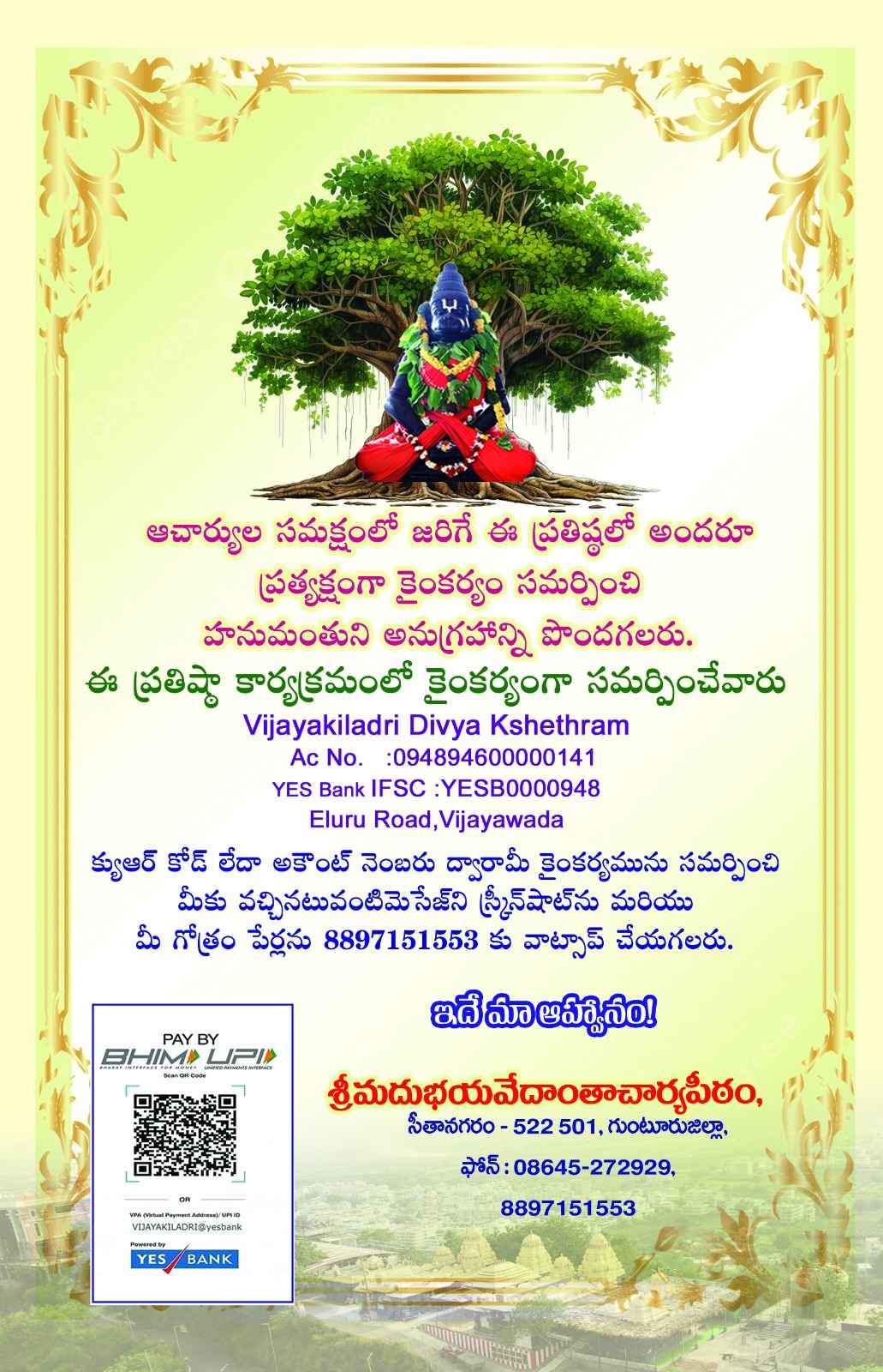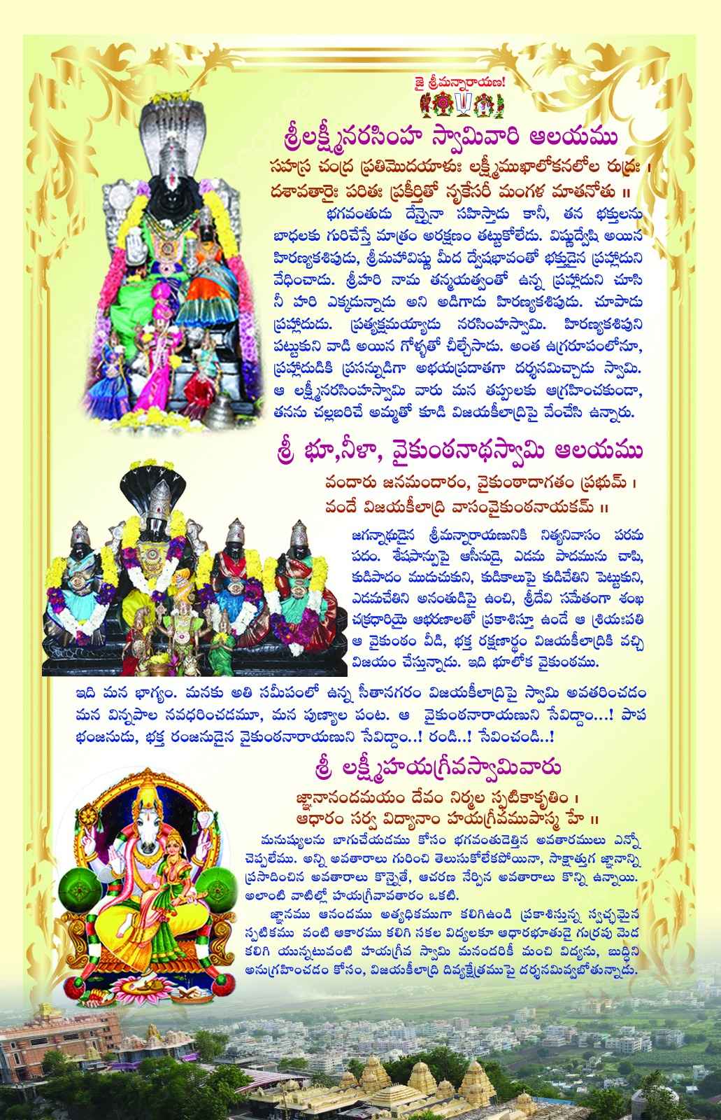 శ్రీలక్ష్మీ నరసింహ స్వామి వారు, శ్రీభూనీళా సమేత వైకుంఠనాథ పెరుమాళ్, శ్రీలక్ష్మీ హయగ్రీవస్వామివారు శ్రీయోగాంజనేయ స్వామివార్ల ఆలయ ప్రతిష్ఠా మహోత్సవములు